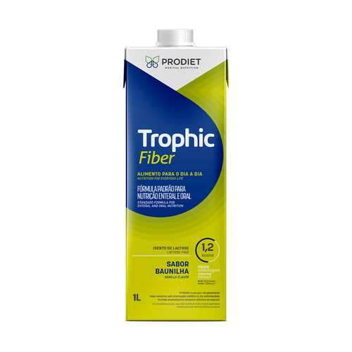 Trophic Fiber – Prodiet é uma fórmula nutricionalmente completa, normocalórica, com exclusivo mix de fibras e proteínas. Sabor baunilha. Indicado uso para transtorno gastro instestinal e constipação.