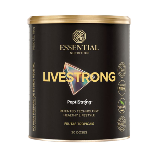 DESCRIÇÃO: LiveStrong é uma fórmula prática e inovadora que combina o sabor marcante do puro cacau com PeptiStrong — proteína hidrolisada da fava, cuidadosamente selecionada com o apoio da inteligência artificial, a partir de uma ampla e avançada base de dados científicos dedicada a ingredientes derivados de plantas.