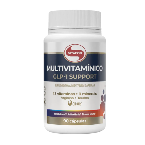 DESCRIÇÃO: MULTIVITAMÍNICO GLP-1 SUPPORT é um suplemento alimentar que combina vitaminas, minerais, taurina, arginina e extrato de oliva (Oli-Ola™), desenvolvido para auxiliar na reposição de micronutrientes e aminoácidos essenciais, contribuindo para o equilíbrio nutricional do organismo.