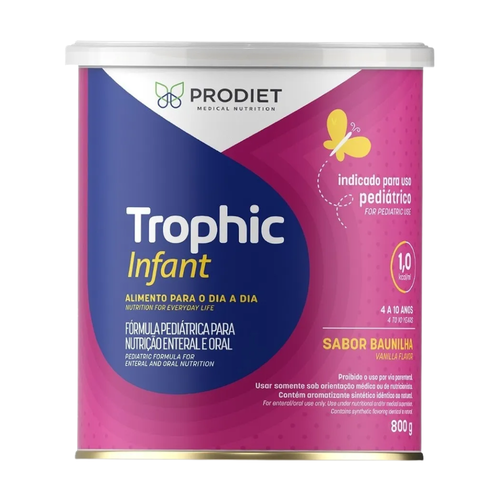 Trophic Infant Prodiet é uma fórmula nutricionalmente completa, com exclusivo mix de proteínas de alto valor biológico, essencial para a recuperação nutricional de crianças. Indicado para casos de desnutrição, nutrição via sonda e nutrição infantil. Produto isento de fibras.